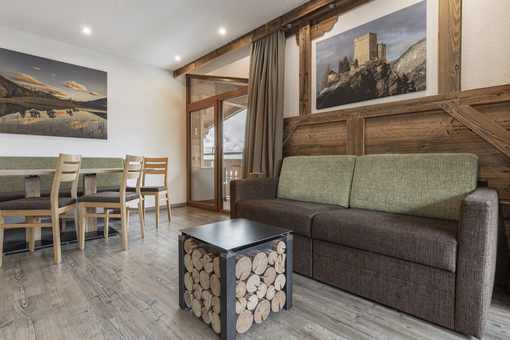 - großzügiger Wohnraum mit Schlafsofa und Essecke