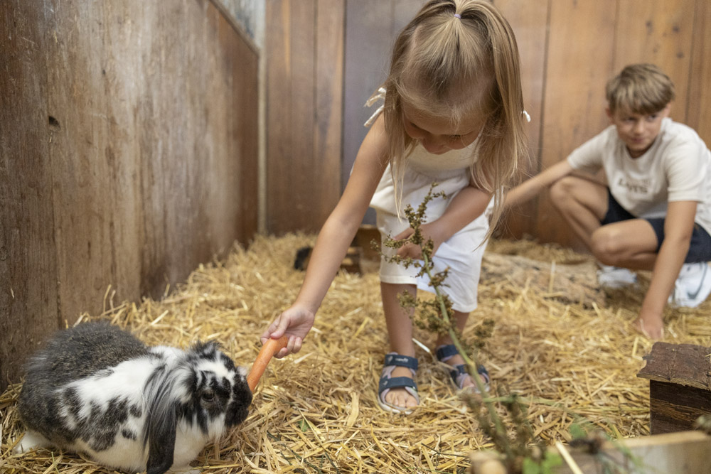 Im Streichelzoo haben die Kinder die Möglichkeit spielerisch Verantwortung zu übernehmen und den respektvollen Umgang mit Tieren zu erlernen. Wie Urlaub am Bauernhof, nur mit etwas mehr Luxus und Komfort rundherum.