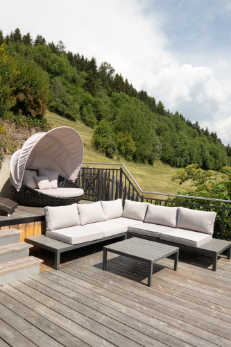 In unserer exklusiven Unterkunft, der Naturlodge 4 erwartet euch ein Private-Spa, der für ultimative Entspannung sorgt. Der luxuriöse Rückzugsort bietet euch eine Oase der Erholung mit Whirlpool und gemütlichen Lounges. Hier könnt ihr eure Sinne verwöhnen lassen und die Privatheit eines eigenen Wellnessbereichs genießen. In der Lodge selbst erwartet euch eine exklusive Panorama-Infrarotkabine mit drei Sitzen für wohltuende Wärme und entspannende Stunden.